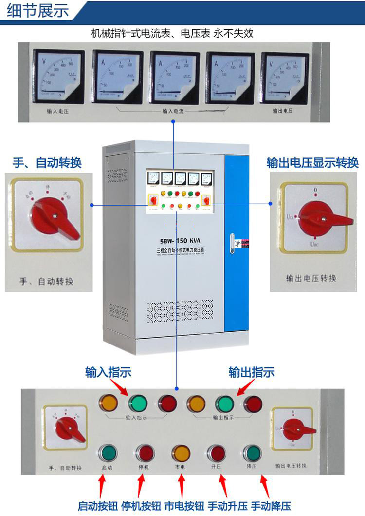 保護功能:SBW-80KVA三相電力304v-456v/380v穩(wěn)壓器具有過壓、過流、缺相、相序保護。