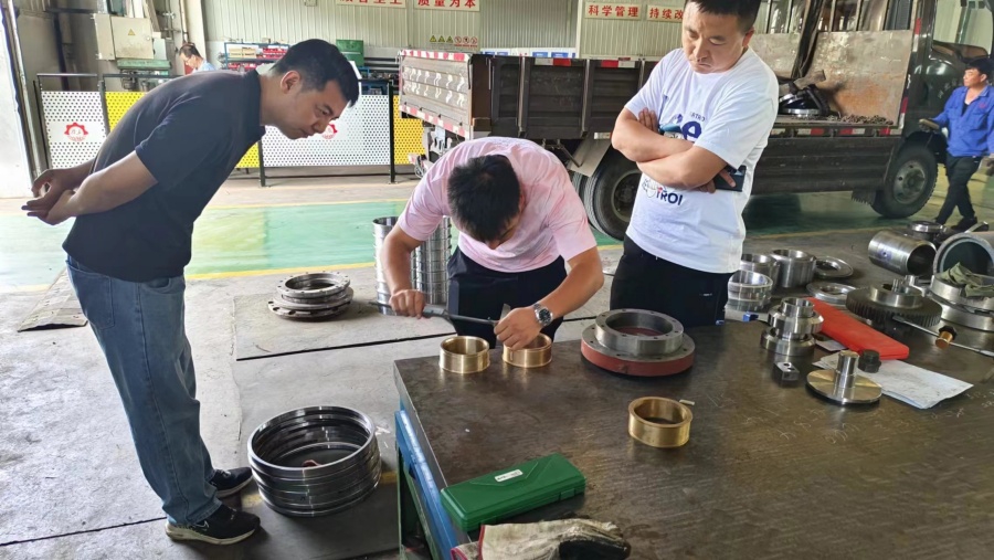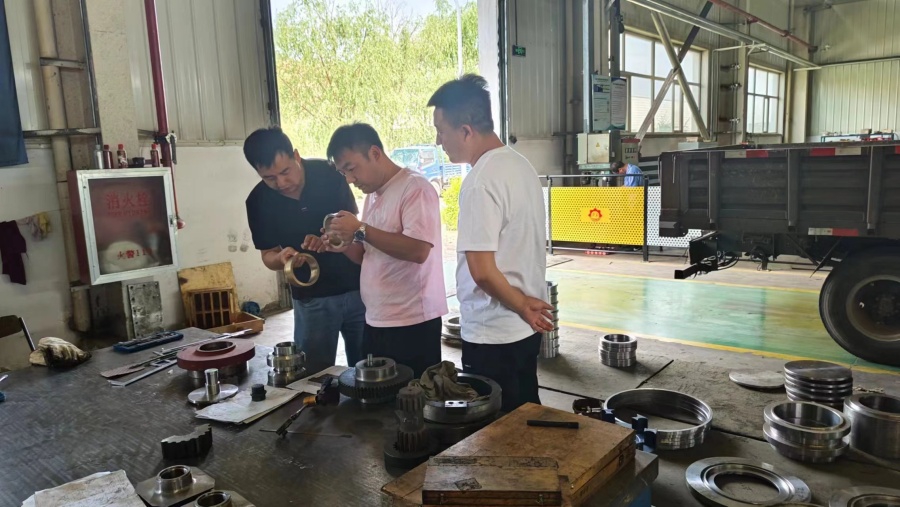 2024年6月26日大同摩利的侯總正在現(xiàn)場驗收聯(lián)軸盤、端蓋、銅套等產(chǎn)品。